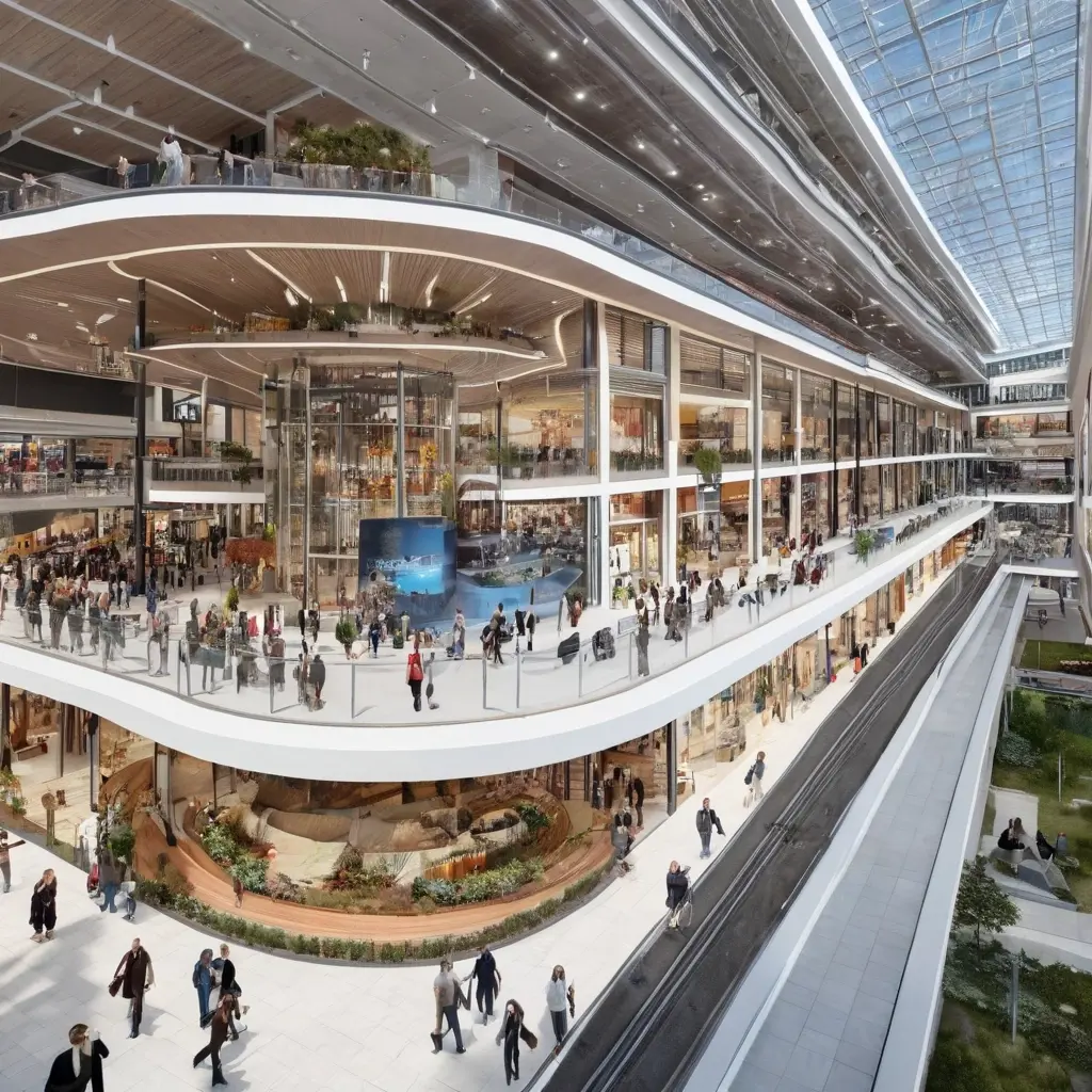 - Многофункциональность — сочетание торговых зон с офисами, кафе, зонами культурных мероприятий.