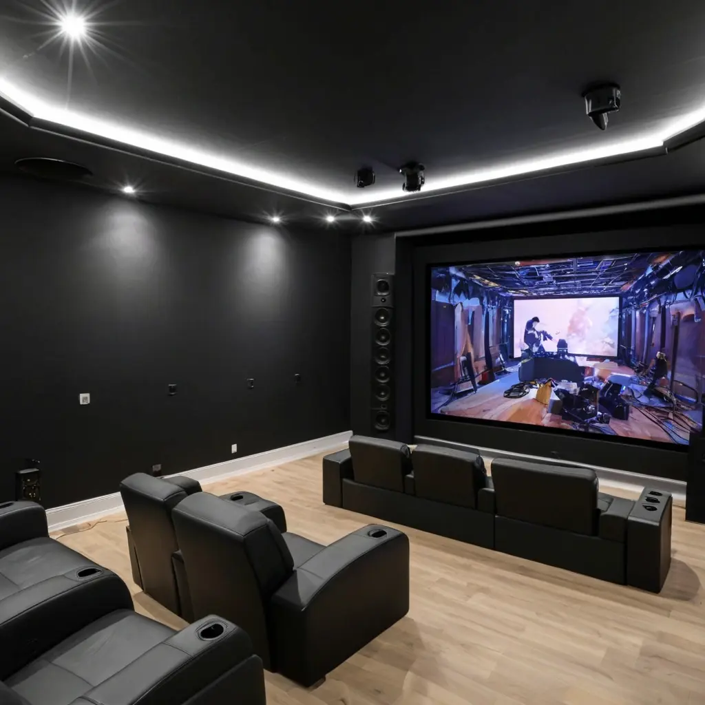 «Оптимальное решение для домашнего кинотеатра — сочетание минеральной ваты внутри стен и установки акустических панелей на поверхности. Такое комбинирование снизит шум и улучшит качество звука, создавая приятную атмосферу для просмотра.»
