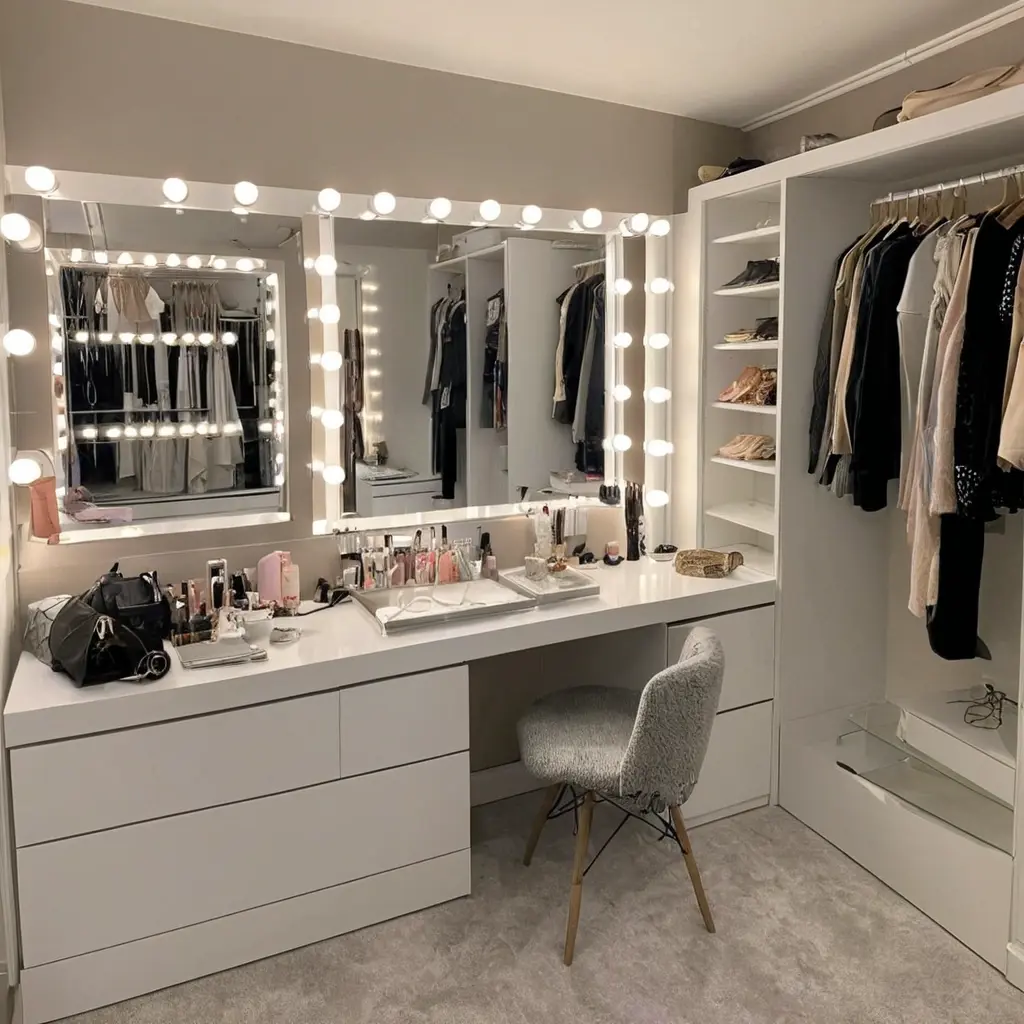 При планировании гримерной важно обратить внимание на размер зеркала, тип и цвет подсветки, а также на грамотную расстановку элементов и функциональные зоны. В результате получится пространство, которое будет вдохновлять и способствовать созданию идеальных образов каждый день.