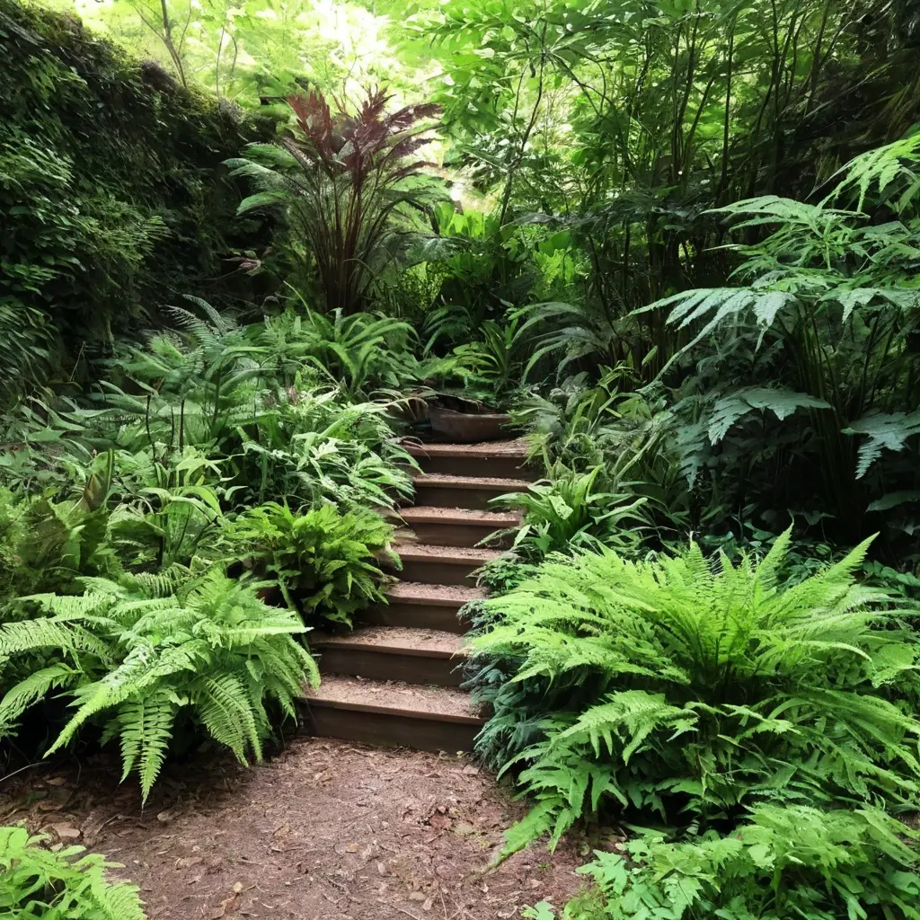 Современные садовые проекты всё чаще включают папоротники для создания расслабляющей атмосферы лесного уголка. Ниже приведены примеры реализации декоративного использования папоротников.