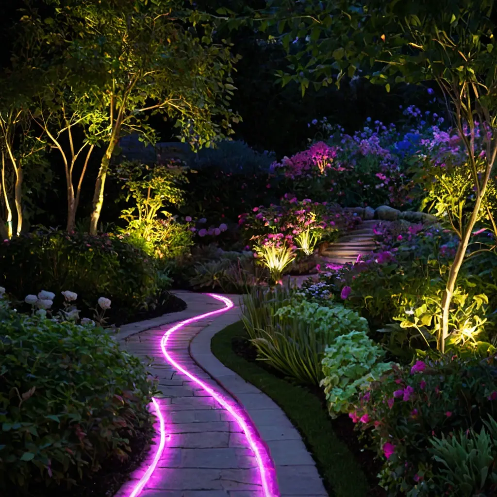 - Практические примеры использования LED-лент в садовом дизайне