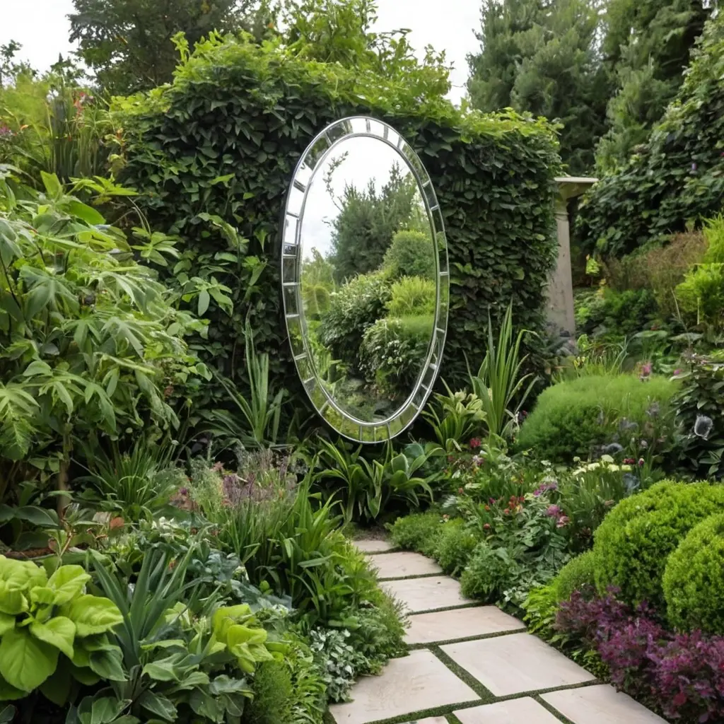 - Синхронизировать стилистически: Рамы и формы зеркал должны соответствовать общей концепции сада.