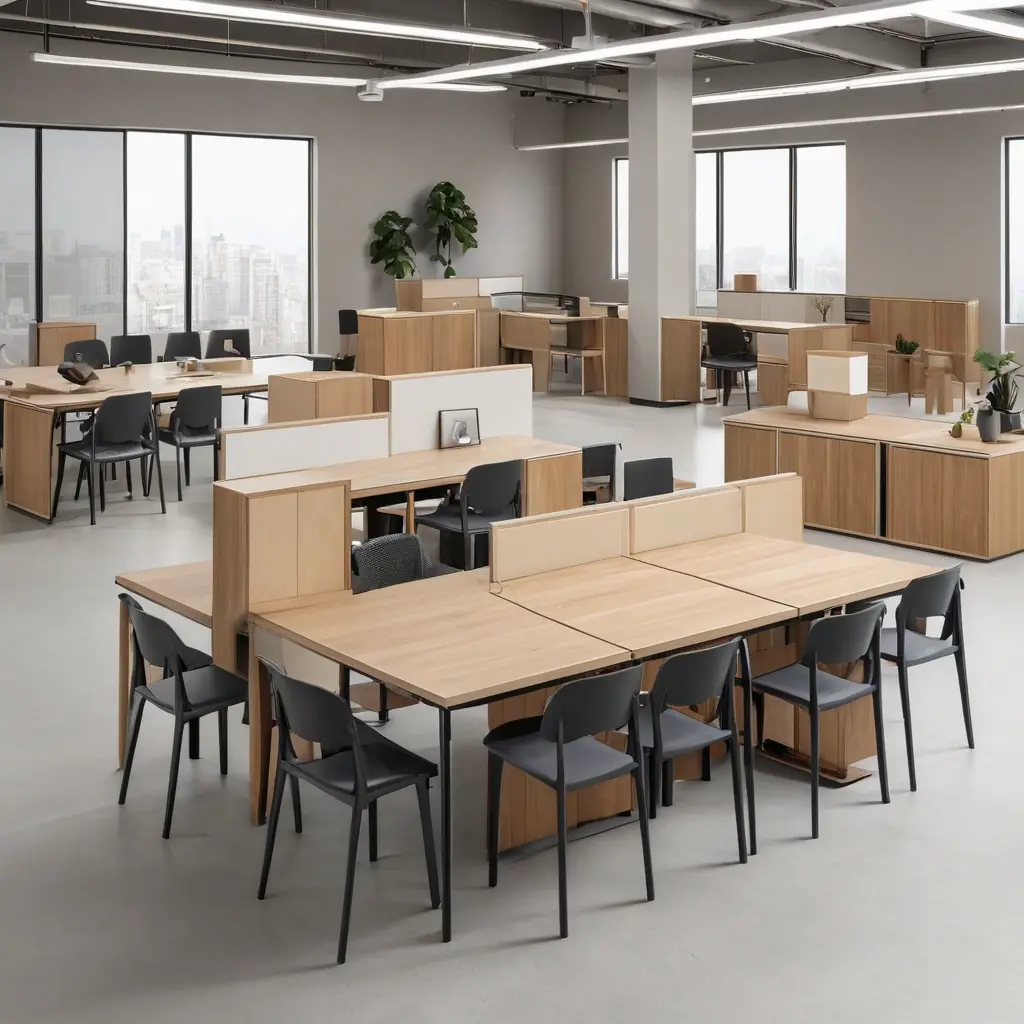 Модульные столы и стеллажи позволяют создавать индивидуальные рабочие зоны, которые можно быстро перенастраивать в зависимости от количества сотрудников. Мобильные перегородки обеспечивают конфиденциальность, а адаптивная мебель поддерживает комфорт и эргономику.