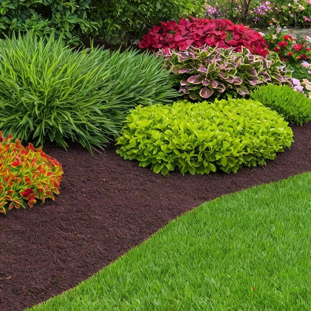 - Красно-коричневый: акцентирует внимание на декоративных кустарниках и газонах.