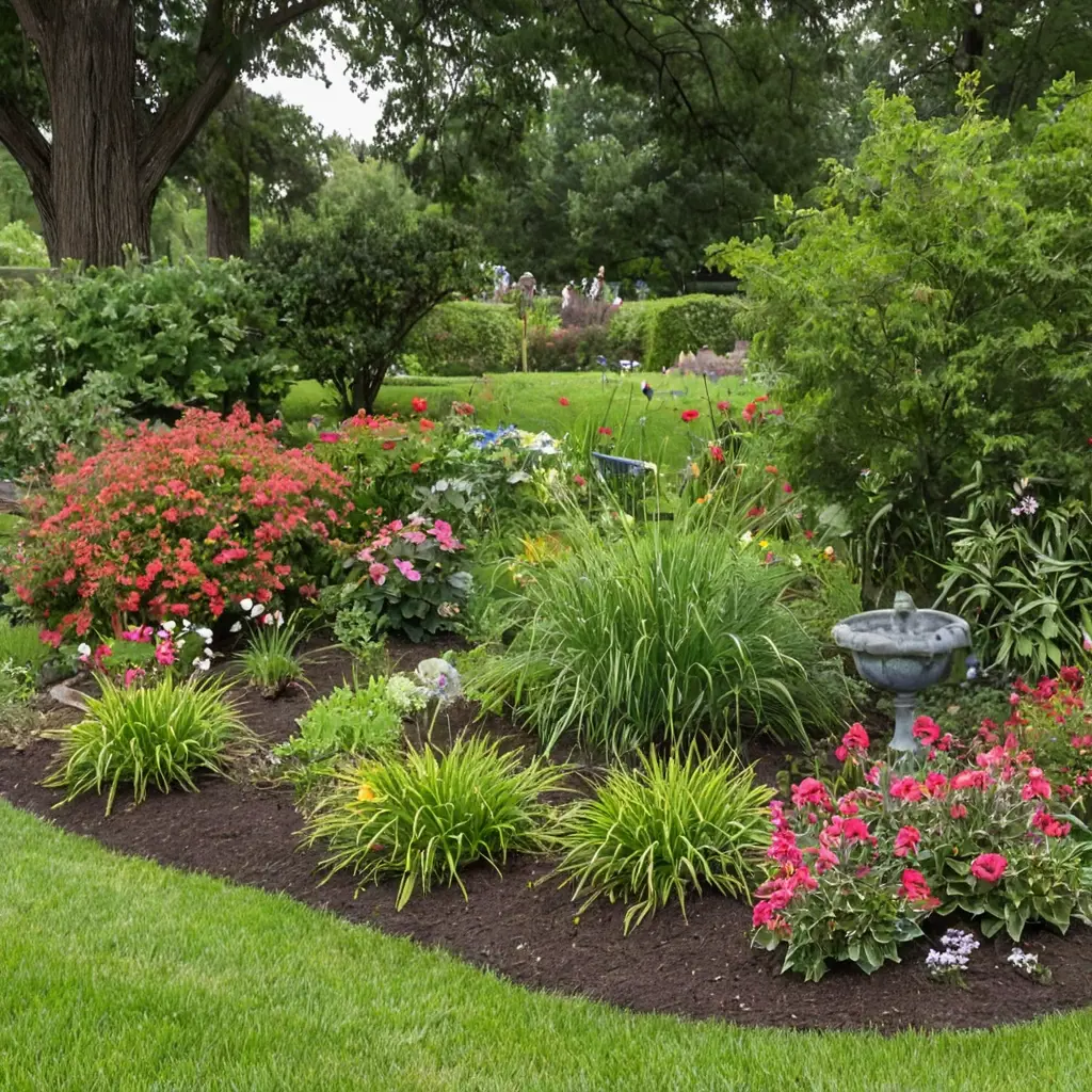 - Цветущие кустарники и многолетники, создающие сезонные акценты.