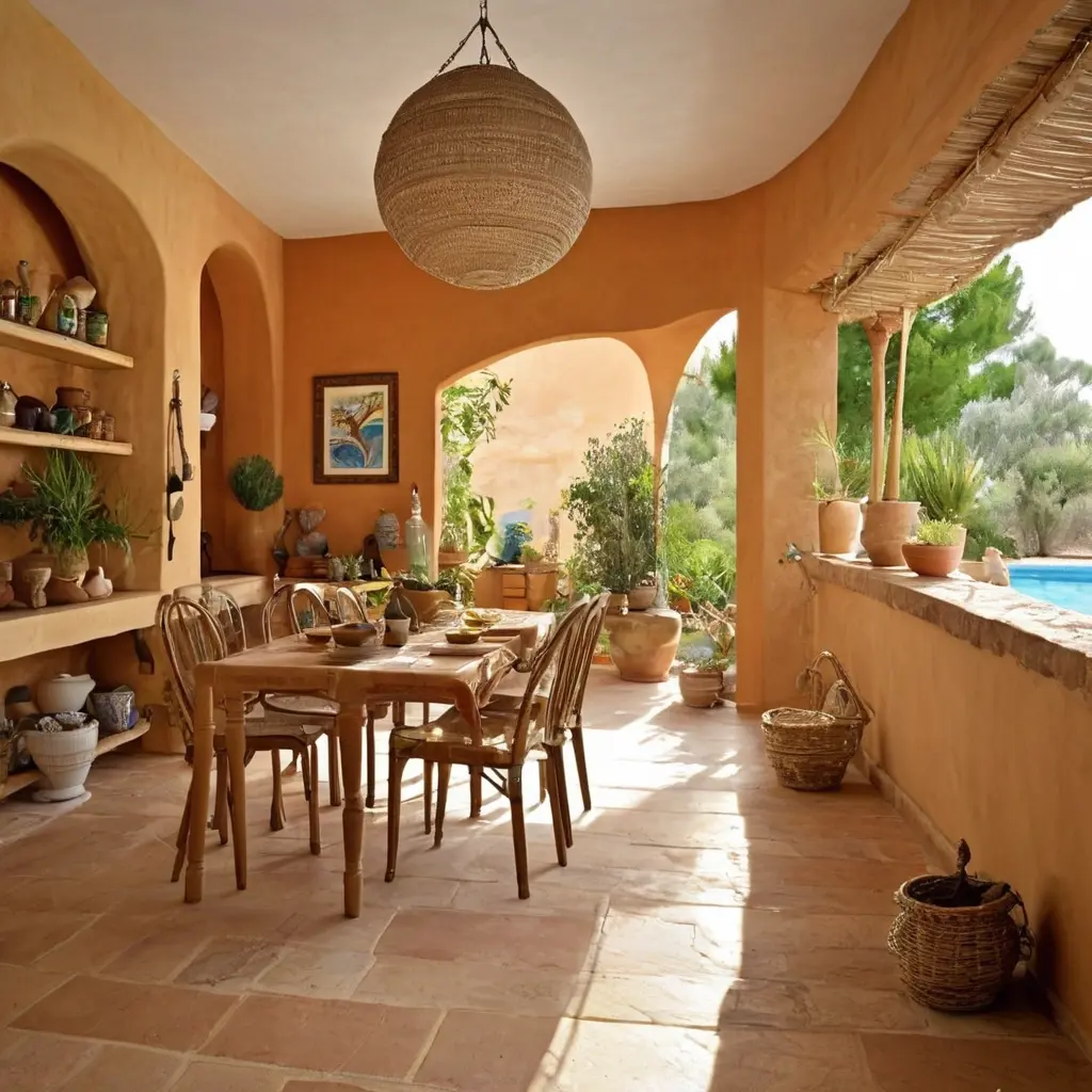 Традиционные керамические плитки ручной работы с яркими узорами часто используют для отделки кухонь и ванных комнат, а глиняная посуда и вазы становятся выразительными акцентами.
