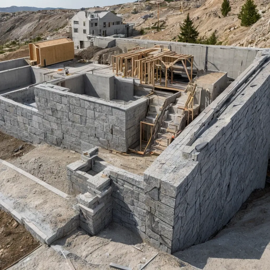 - Укладка блоков с применением специальных растворов и техники для обеспечения герметичности и устойчивости конструкции.